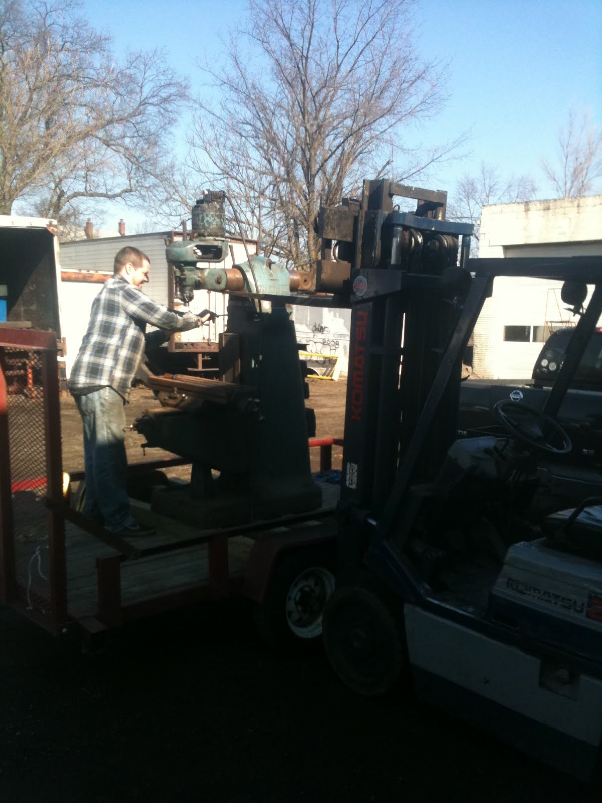 so DS tim called and asked if i wanted to get outta town and ride shotgun to NJ and pic up a milling mach he scored from the dudes at 47 INDUSTRIES, here we are gettin ready to load.